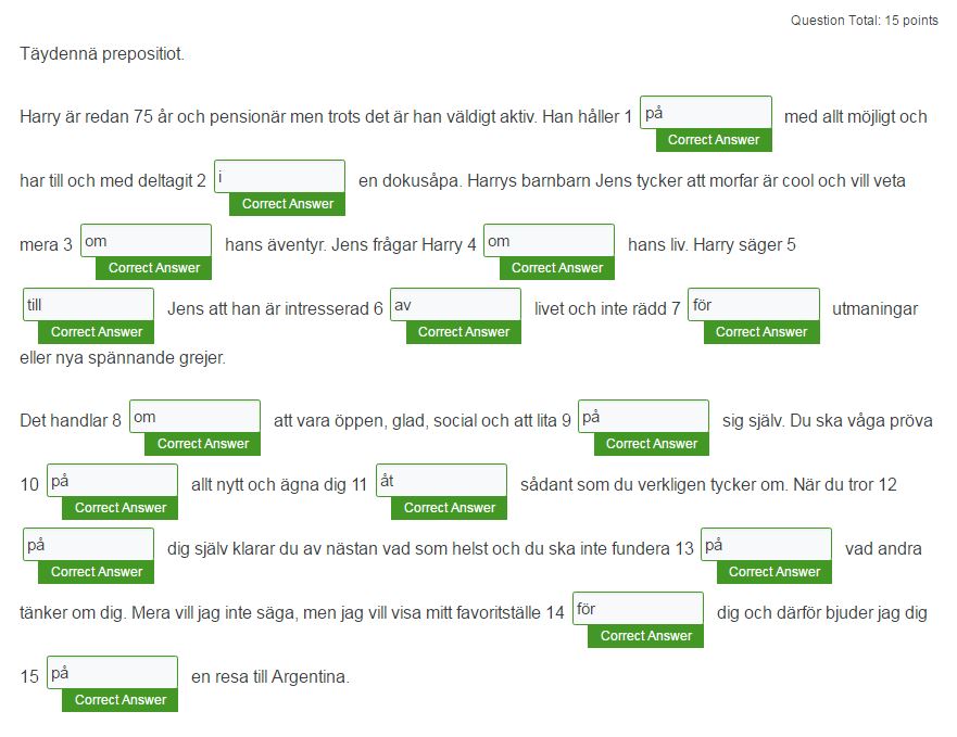 Poikkesin Pekka Peuran menetelmästä siinä, että joka kolmas oppitunti oli ns. tavallinen tunti, joilloin testattiin sanaston hallintaa perinteisillä paperisilla sanakokeilla, tehtiin kuunteluja ja käytiin läpi kielioppirakenteita. Pidämme koeviikolla myös normaalin (sähköisen) kurssikokeen, mutta opiskelijat saavat itsekin ehdottaa itselleen sopivaa kurssiarvosanaa.